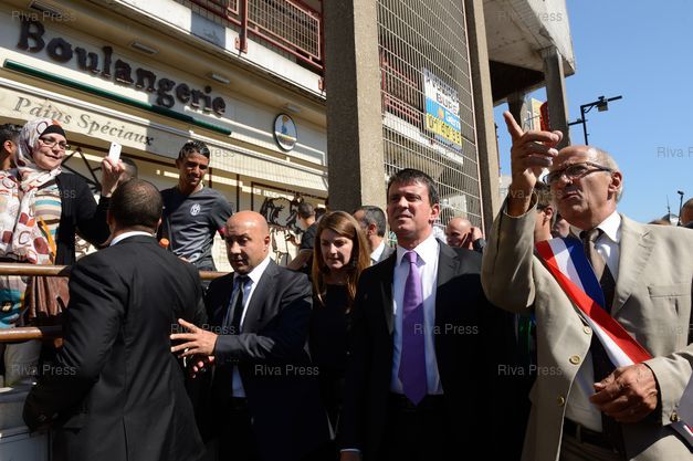 Manuel Valls déambule dans le quartier Louis Aragon, accompagné par Philippe Sarre, maire de Colombes - Colombes - 05/09/2013 - Photo © Lionel Préau +33 (0)6 68 12 83 77