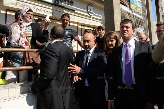 Manuel Valls déambule dans le quartier Louis Aragon, accompagné par Philippe Sarre, maire de Colombes - Colombes - 05/09/2013 - Photo © Lionel Préau +33 (0)6 68 12 83 77