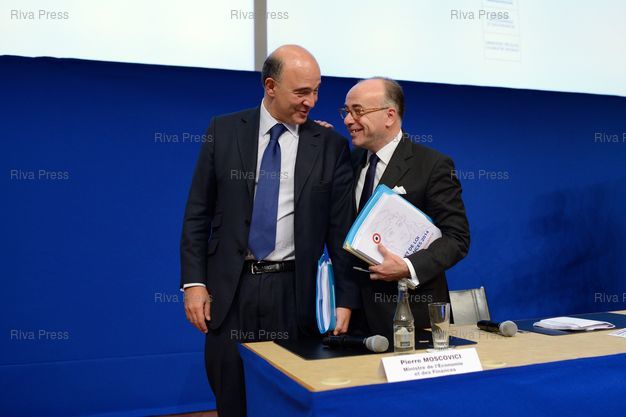 Titre : Moscovici et Cazeneuve présentent le projet de loi de finances 2014