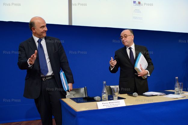 Titre : Moscovici et Cazeneuve présentent le projet de loi de finances 2014