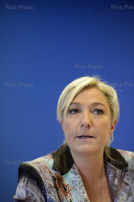 Légende : Marine Le Pen, présidente du Front National, s'exprime sur le chômage lors d'une conférence de presse au siège du mouvement - Nanterre - 25/10/2013 - Photo © Lionel Préau +33 (0)6 68 12 83 77