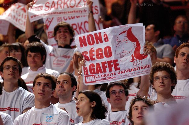 Mots-clés : 2007, Bercy, Droite, droite universitaire, etudiants, gaffe, Jeunes, jeunesse, Meeting, Militants, Paris, Présidentielle, Public, Royal, sego, segolene, supporter, UNI