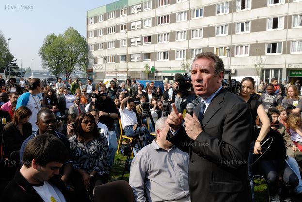 François Bayrou, place Georges Braque, au milieu des immeubles de la cité - La Courneuve - 14/04/2007 - Photo © Lionel Préau +33 (0)6 68 12 83 77