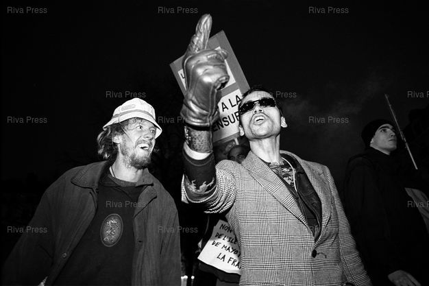 Légende : Rassemblement contre " la françafrique et le soutien aux dictateurs africains ", à l'appel de Survie, à la veille de l'ouverture du Sommet de la francophonie de Ouagadougou au Burkina Faso - Fontaine des Innocents - Paris - 25/11/2004 - Photo © Lionel Préau +33 (0)6 68 12 83 77