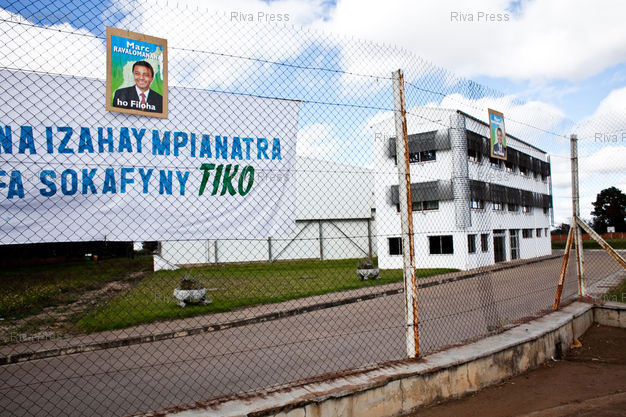 Légende : 17/06/2012 - Antsirabe, Madagascar - Les infrastructures de la societe TIKO appartenant a l'ex-president dechu en 2009 Marc Ravalomanana, sont menaces de saisie par l'Etat Malgache pour des impots impayes s'elevant a 172 milliards d'Ariary (environ 62 millions d'euros). PHOTO : RIJASOLO / RIVA PRESS