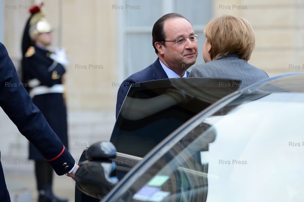 Mots-clés : 2014, Angela Merkel, Elysée, embrasse, franco-allemand, Francois Hollande, Hollande, Merkel, Paris