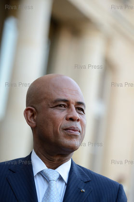 Joseph Michel Martelly surant le point presse suivant l'entretien - Paris - 21/02/2014 - Photo © Lionel Préau +33 (0)6 68 12 83 77