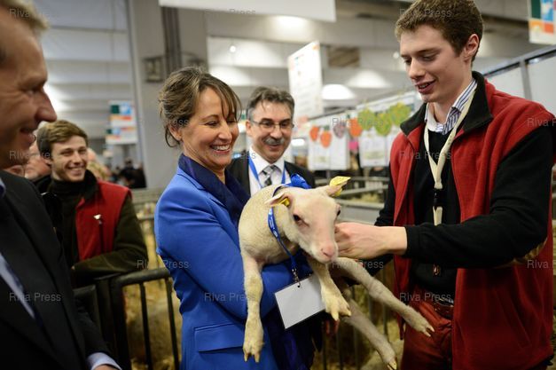 Ségolène Royal prend un chevreau dans ses bras, en présence de Guillaume Garot, ministre délégué chargé de l'agroalimentaire - Paris - 27/02/2014 - Photo © Lionel Préau +33 (0)6 68 12 83 77