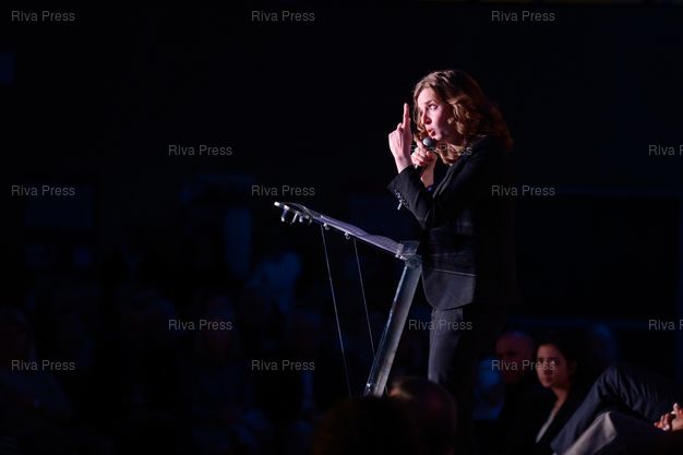 Légende : Dernier meeting de campagne de Nathalie Kosciusko-Morizet, candidate de l'UMP à la mairie de Paris, avant le premier tour des élections municipales - Gymnase Rosa Parks - Paris - 20/03/2014 - Photo © Lionel Préau +33 (0)6 68 12 83 77