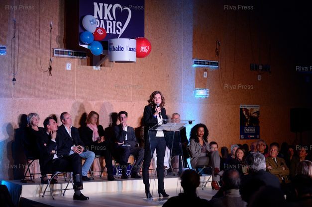 Légende : Dernier meeting de campagne de Nathalie Kosciusko-Morizet, candidate de l'UMP à la mairie de Paris, avant le premier tour des élections municipales - Gymnase Rosa Parks - Paris - 20/03/2014 - Photo © Lionel Préau +33 (0)6 68 12 83 77