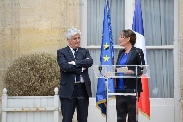 Légende : Passation des pouvoirs entre Philippe Martin et Ségolène Royal au ministère de l'Ecologie, du Développement durable et de l'Energie.