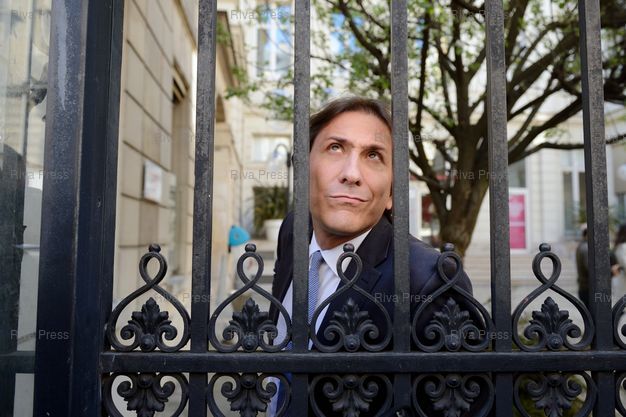 Jérôme Guedj derrière la grille d'entrée du siège du PS - Paris - 09/04/2014 - Photo © Lionel Préau +33 (0)6 68 12 83 77