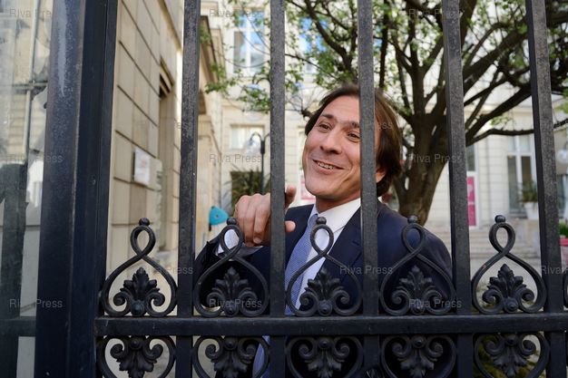Jérôme Guedj derrière la grille d'entrée du siège du PS - Paris - 09/04/2014 - Photo © Lionel Préau +33 (0)6 68 12 83 77
