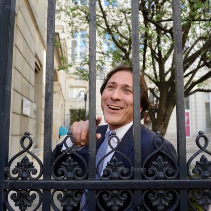 Jérôme Guedj derrière la grille d'entrée du siège du PS - Paris - 09/04/2014 - Photo © Lionel Préau +33 (0)6 68 12 83 77