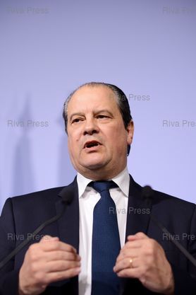 Caption : Jean-Christophe Cambadélis, Premier secrétaire du Parti socialiste, présente les argumentaires de la campagne des européennes du parti - Paris - 24/04/2014 - Photo © Lionel Préau +33 (0)6 68 12 83 77