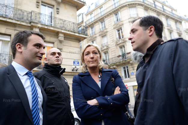 Florian Philippot, Marine Le Pen et Nicolas Bay Place des Saussaies - Paris - 25/04/2014 - Photo © Lionel Préau +33 (0)6 68 12 83 77