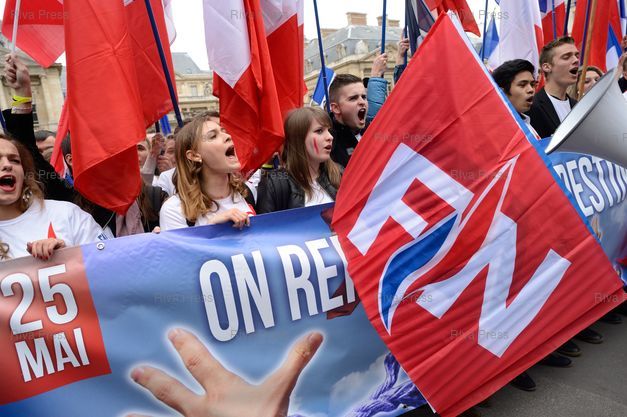 Militants du Front national de la jeunesse (FNJ) - Paris - 01/05/2014 - Photo © Lionel Préau +33 (0)6 68 12 83 77