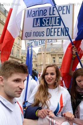 Mots-clés : 2014, couple, Defile, fille, FN, FNJ, Front national, garçon, Jeunes, jeunesse, Marine Le Pen, nationalistes, Paris