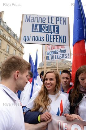 Mots-clés : 2014, couple, Defile, fille, FN, FNJ, Front national, garçon, Jeunes, jeunesse, Marine Le Pen, nationalistes, Paris