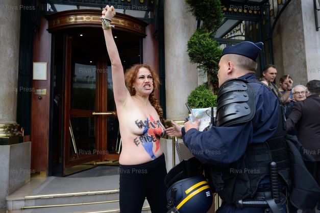 Action de militantes des Femen avant le départ du défilé - Paris - 01/05/2014 - Photo © Lionel Préau +33 (0)6 68 12 83 77