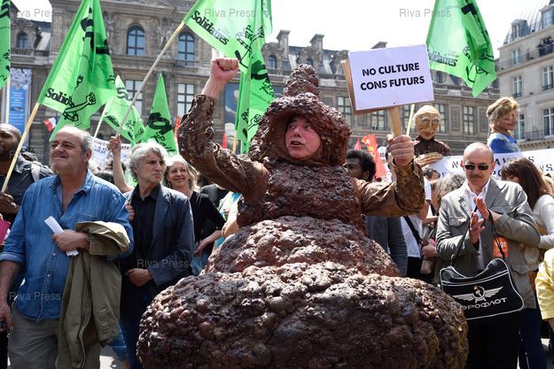 Légende : Manifestations des intermittents à l'appel de la CGT-Spectacle contre la baisse des budgets de la culture et la réforme du régime des intermittents - place du Palais Royal - Paris - 16/06/2014 - Photo © Lionel Préau +33 (0)6 68 12 83 77