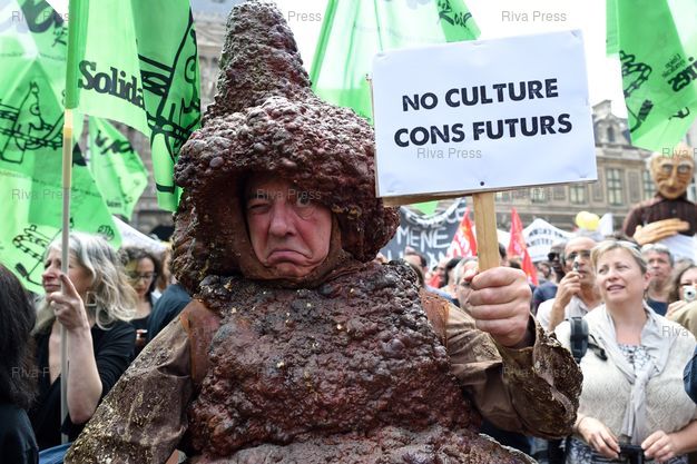 Légende : Manifestations des intermittents à l'appel de la CGT-Spectacle contre la baisse des budgets de la culture et la réforme du régime des intermittents - place du Palais Royal - Paris - 16/06/2014 - Photo © Lionel Préau +33 (0)6 68 12 83 77