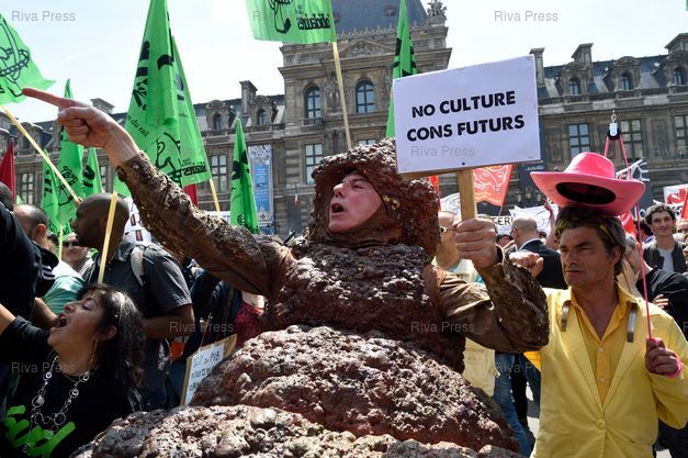Légende : Manifestations des intermittents à l'appel de la CGT-Spectacle contre la baisse des budgets de la culture et la réforme du régime des intermittents - place du Palais Royal - Paris - 16/06/2014 - Photo © Lionel Préau +33 (0)6 68 12 83 77