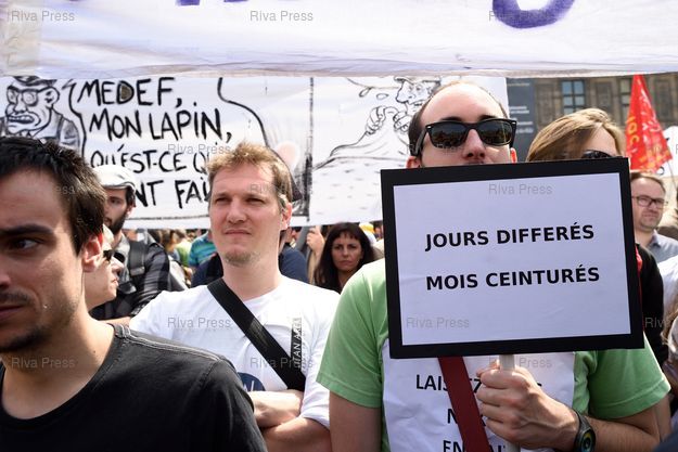 Légende : Manifestations des intermittents à l'appel de la CGT-Spectacle contre la baisse des budgets de la culture et la réforme du régime des intermittents - place du Palais Royal - Paris - 16/06/2014 - Photo © Lionel Préau +33 (0)6 68 12 83 77