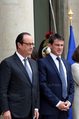 François Hollande et Manuel Valls sur le perron pendant le départ du couple royal - Paris - 22/07/2014 - Photo © Lionel Préau +33 (0)6 68 12 83 77