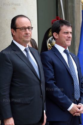 François Hollande et Manuel Valls sur le perron pendant le départ du couple royal - Paris - 22/07/2014 - Photo © Lionel Préau +33 (0)6 68 12 83 77