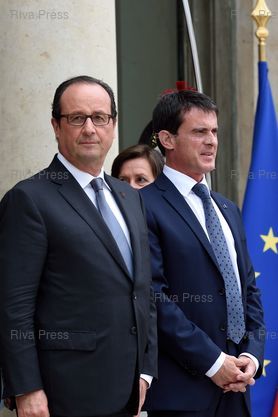 François Hollande et Manuel Valls sur le perron pendant le départ du couple royal - Paris - 22/07/2014 - Photo © Lionel Préau +33 (0)6 68 12 83 77