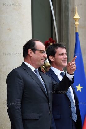 François Hollande et Manuel Valls sur le perron pendant le départ du couple royal - Paris - 22/07/2014 - Photo © Lionel Préau +33 (0)6 68 12 83 77