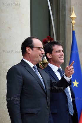François Hollande et Manuel Valls sur le perron pendant le départ du couple royal - Paris - 22/07/2014 - Photo © Lionel Préau +33 (0)6 68 12 83 77