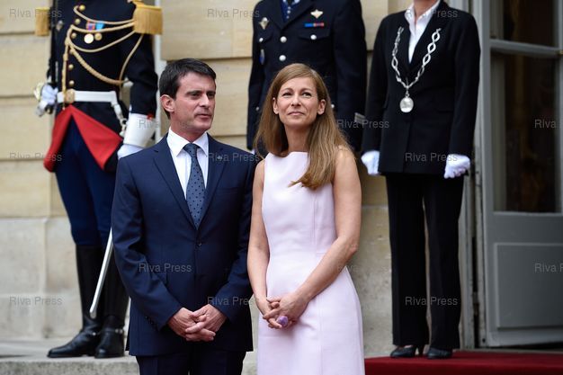 Manuel Valls et Anne Gravoin attendent l'arrivée de leur hôtes - Paris - 22/07/2014 - Photo © Lionel Préau +33 (0)6 68 12 83 77
