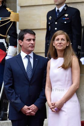 Manuel Valls et Anne Gravoin attendent l'arrivée de leur hôtes - Paris - 22/07/2014 - Photo © Lionel Préau +33 (0)6 68 12 83 77