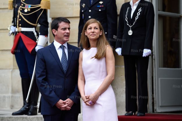 Manuel Valls et Anne Gravoin attendent l'arrivée de leur hôtes - Paris - 22/07/2014 - Photo © Lionel Préau +33 (0)6 68 12 83 77