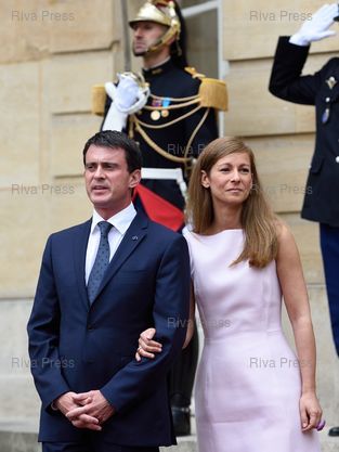 Manuel Valls et Anne Gravoin attendent l'arrivée de leur hôtes - Paris - 22/07/2014 - Photo © Lionel Préau +33 (0)6 68 12 83 77