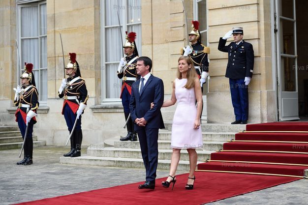 Manuel Valls et Anne Gravoin s'avancent pour accueillir leur hôtes - Paris - 22/07/2014 - Photo © Lionel Préau +33 (0)6 68 12 83 77