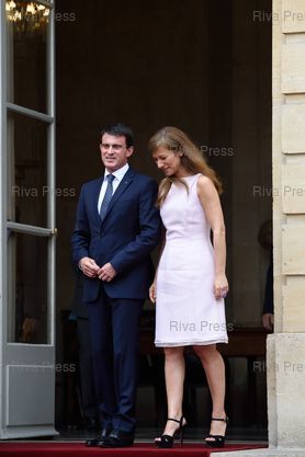Manuel Valls et Anne Gravoin sur le perron pendant le départ du couple royal - Paris - 22/07/2014 - Photo © Lionel Préau +33 (0)6 68 12 83 77