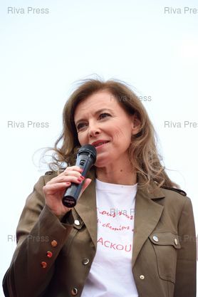 Légende : Anne Hidalgo et Valérie Trierweiler inaugurent une exposition de soutien aux nigérianes enlevées - Place de la République.