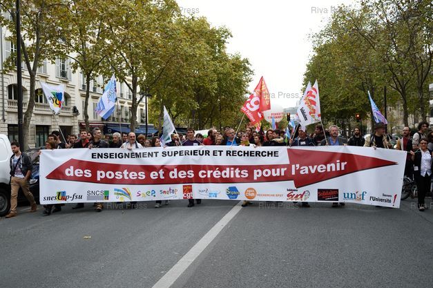 Légende : Sciences en marche - Manifestation pour l'enseignement supérieur et la recherche. Arrivée du cortège place Vauban - Paris - 17/10/2014 - Photo © Lionel Préau +33 (0)6 68 12 83 77