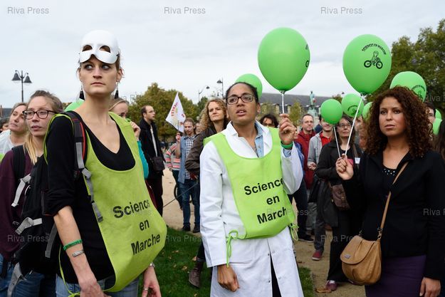 Caption : Sciences en marche - Manifestation pour l'enseignement supérieur et la recherche. Arrivée du cortège place Vauban - Paris - 17/10/2014 - Photo © Lionel Préau +33 (0)6 68 12 83 77