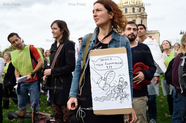 Légende : Sciences en marche - Manifestation pour l'enseignement supérieur et la recherche. Arrivée du cortège place Vauban - Paris - 17/10/2014 - Photo © Lionel Préau +33 (0)6 68 12 83 77