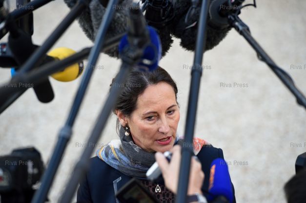 Mots-clés : 2014, Conseil des Ministres, Elysée, Journalistes, Micros, Ministre, Paris, perches, presse, Ségolène Royal, Son