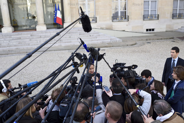 Mots-clés : 2014, Conseil des Ministres, Elysée, Journalistes, Micros, Ministre, Paris, perches, presse, Ségolène Royal, Son