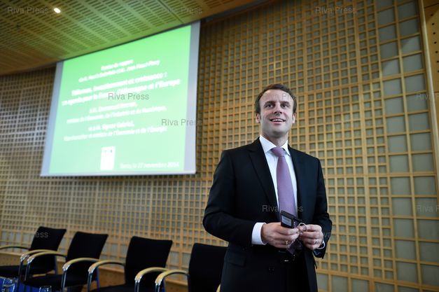 Emmanuel Macron avant l'arrivée des économistes pour la conférence de presse - Paris - 27/11/2014 - Photo © Lionel Préau +33 (0)6 68 12 83 77