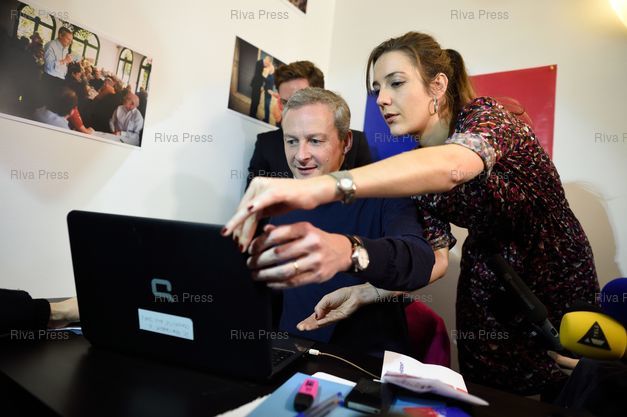 Légende : Bruno Le Maire se rend à son QG de campagne pour le vote électronique pour l'élection du président de l'UMP - Paris - 29/11/2014 - Photo © Lionel Préau +33 (0)6 68 12 83 77