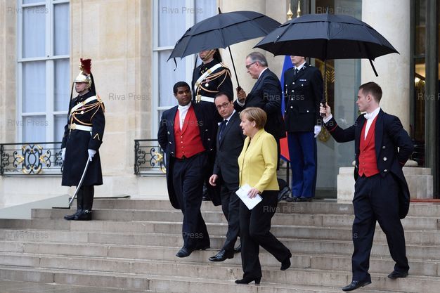 Mots-clés : 2015, Angela Merkel, Elysée, france allemagne, franco allemand, Francois Hollande, Hollande, Merkel, parapluie, Paris, pluie