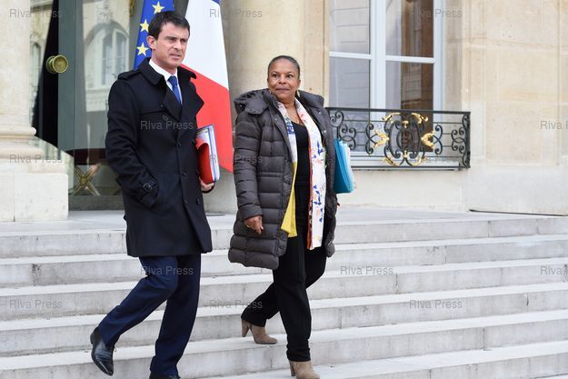 Mots-clés : 2015, Christiane Taubira, Conseil des Ministres, Elysée, Manuel Valls, Ministre, Paris, taubira, Valls