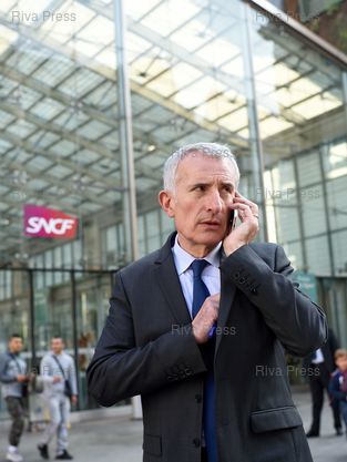 Guillaume Pepy, président de la SNCF, au téléphone - Paris - 21/04/2015 - Photo © Lionel Préau +33 (0)6 68 12 83 77